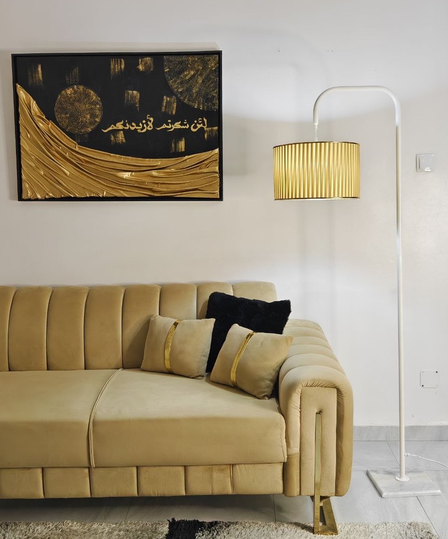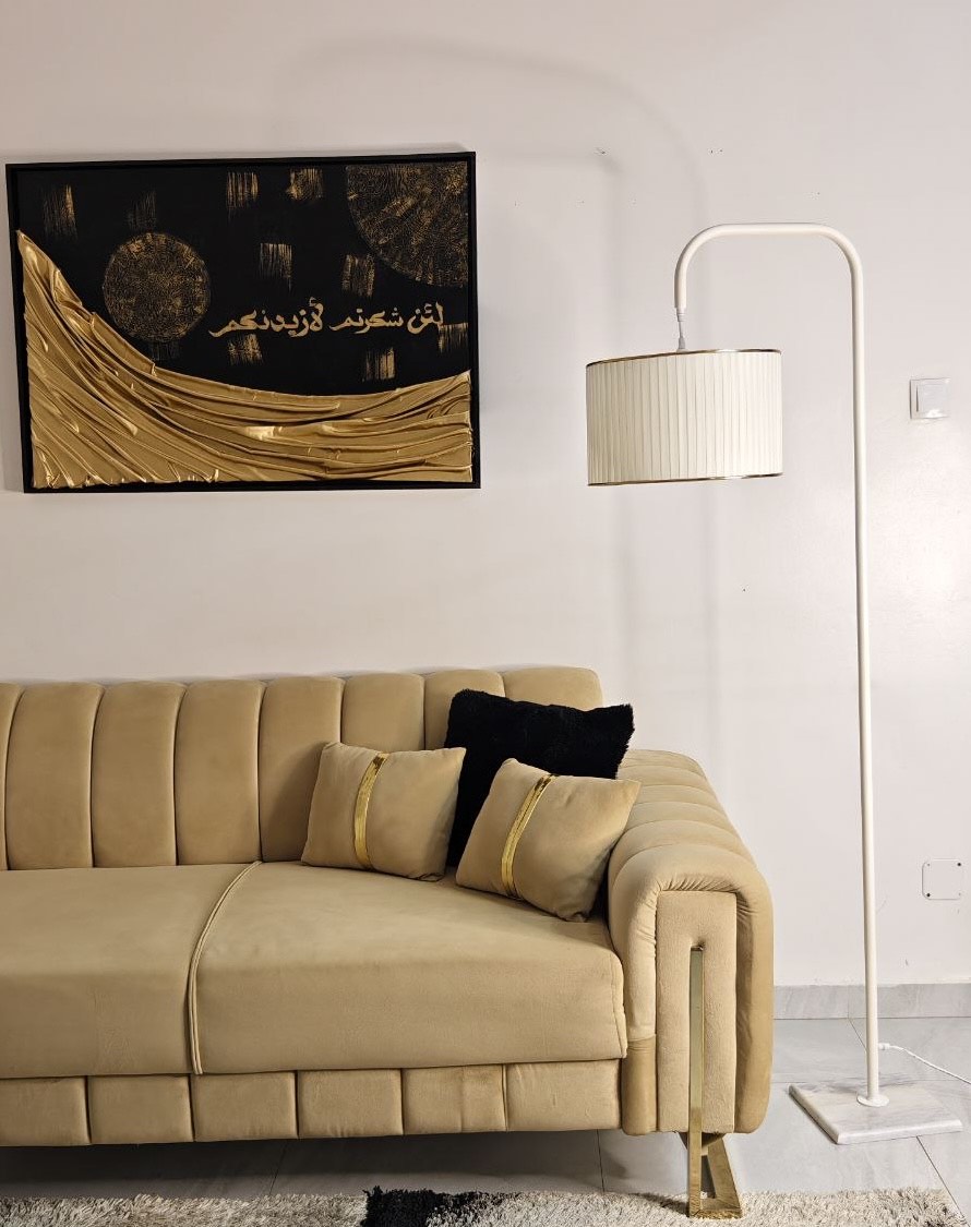 Lampadaire en métal 🔹Hauteur 170cm 🔹Base en marbre 🔹Abat-jour plissé en tissu anti tache